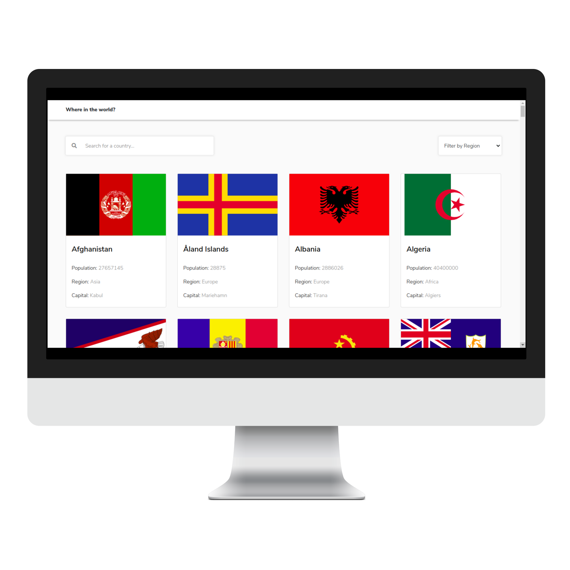 This project consists in build the front-end of an application that allow users to see a list of all countries and the ability to filter by region and search by country name. In each country details the user can navigate between border countries.